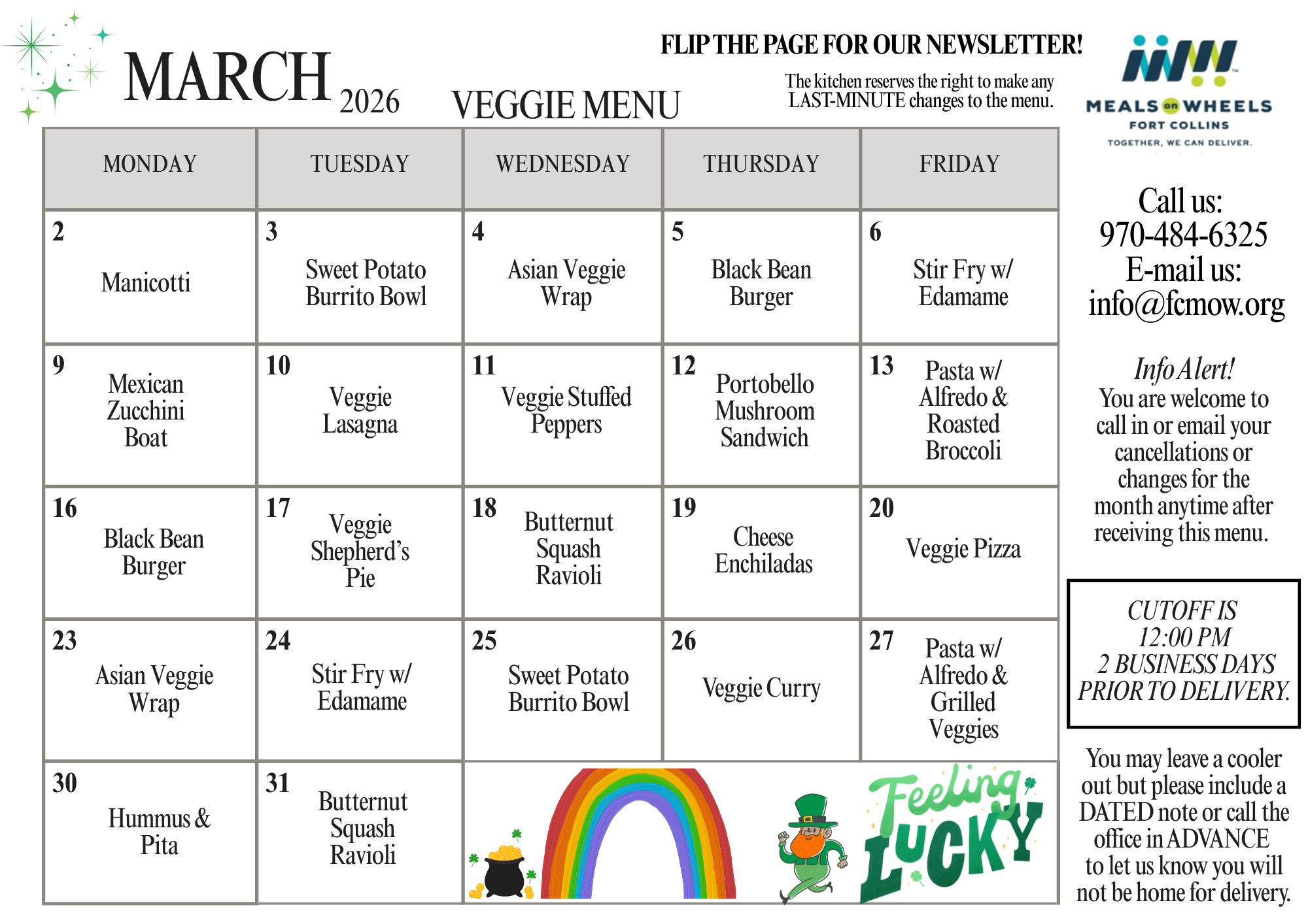 February 2026 Veggie Menu